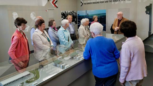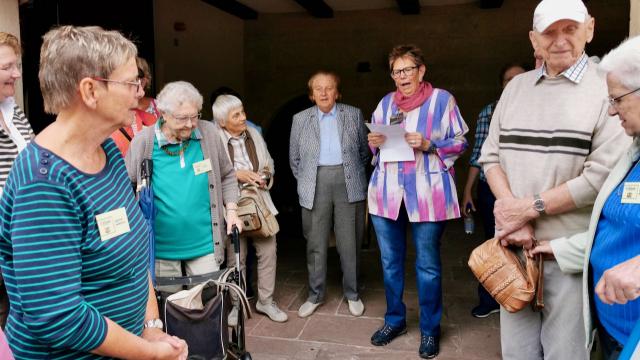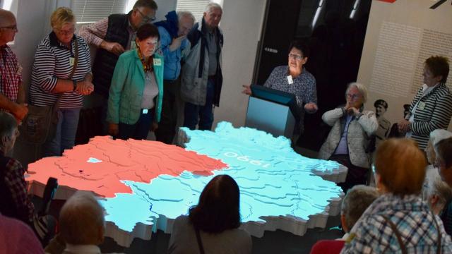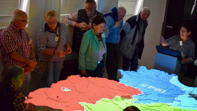 Zunächst kam Stefan Koch als Überraschungsgast zu Besuch, um sich als einer der Bürgermeisterbewerber vorzustellen. Pünktlich startete die Gruppe nach einer lustigen Grenzgeschichte und Einstimmung durch Frau Hellbrück zum Grenzlandmuseum, wo wir von Johannes Broermann von der KirchenZeitung, aber auch von zwei Reisebegleitungen durch das Museum erwartet wurden.