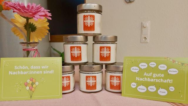 „Heute, am 28. Mai, ist Tag der Nachbarn und ich dachte, wir machen unseren Nachbarn in der Scharrenstraße eine kleine Freude mit einer netten Geste“, sagt LWH-Leiter Johannes Riemekasten-Remy. Gemeinsam mit den Kerzen wurden auch Postkarten verteilt, unterstützt wurde Riemekasten-Remy dabei von LWH-Mitarbeiter Detlef Gabler.