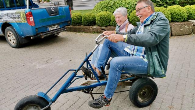 Von Krebeck und Bodensee kommend, gab es den nächsten Zwischenstopp in Renshausen. Ein Kaffee-und-Kuchen-Stopp folgte im Erlenhof in Gieboldehausen – Ferienatmosphäre für Reitfreunde, aber auch Senioren. Dazu kam als weiterer Überraschungsgast ein Kommunalpolitiker mit Sohn zu Besuch.