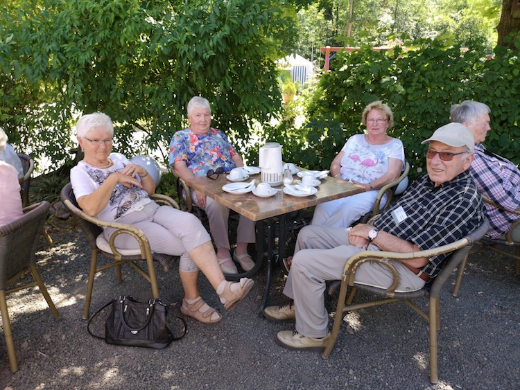 Nach Den Betriebsführungen war es Zeit für Erholung in dem Biergarten des Campings Gelände der Eulenburg, ein früheres Fabrikgelände. Bei selbstgebackenem Heidelbeer- und Mandelkuchen schöpften wir bald Kraft um mit Hr Gröning das Gelände und ihre Vergangenheit, aber auch die heutige Nutzung zu entdecken. Gruppenangebote, klassischer Camping und auch das Heuhotel ist regelmäßig angefragt und schreibt in diesem Jahr positive Zahlen. Wir fühlten uns rundum wohl und es war für alle eine Neuentdeckung einer so nahen Wohlfühloase.
