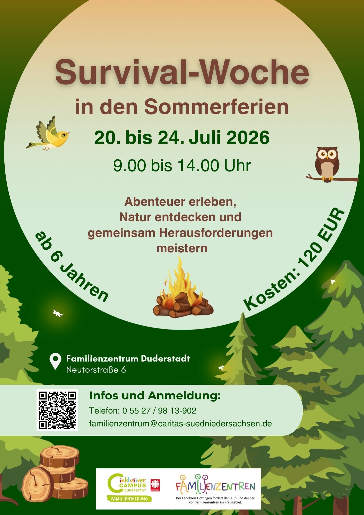 In unserer Survival-Woche im Wald erleben Kinder eine abwechslungsreiche Zeit voller Natur, Abenteuer und Gemeinschaft. Spielerisch lernen sie wichtige Grundlagen des Überlebens wie Feuer machen, Wasser- und Nahrungskunde, Orientierung, Shelterbau und erste Hilfe.
